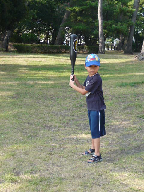 「野球がしたい」 というので日中、時間を割いて海辺の公園に出かけた