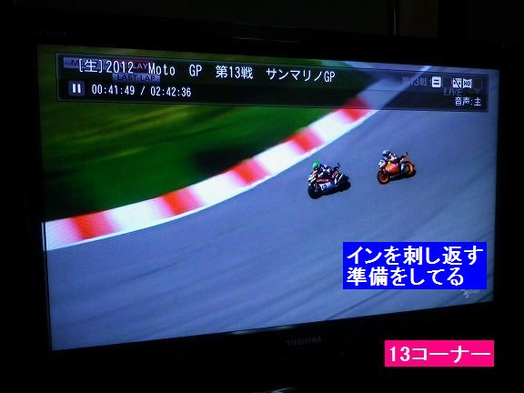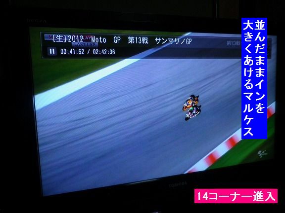 マルケス大きく右に振って、アウト目一杯から理想的進入で