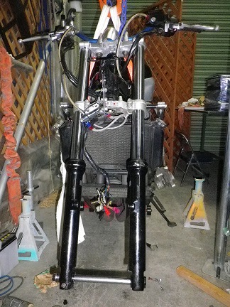 トップブリッジ加工もおわり、ハンドルバー装着